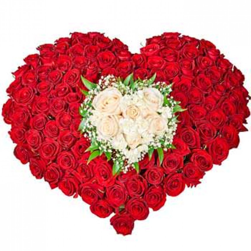 Описание композиции: Шикарная композиция из роз в форме сердца приведет в восторг Вашего получателя, а Вы несомненно будете усыпаны благодарственными комплиментами! Состав: 159 красных и белых роз, гвоздика, гипсофила, зелень, флористический материал.