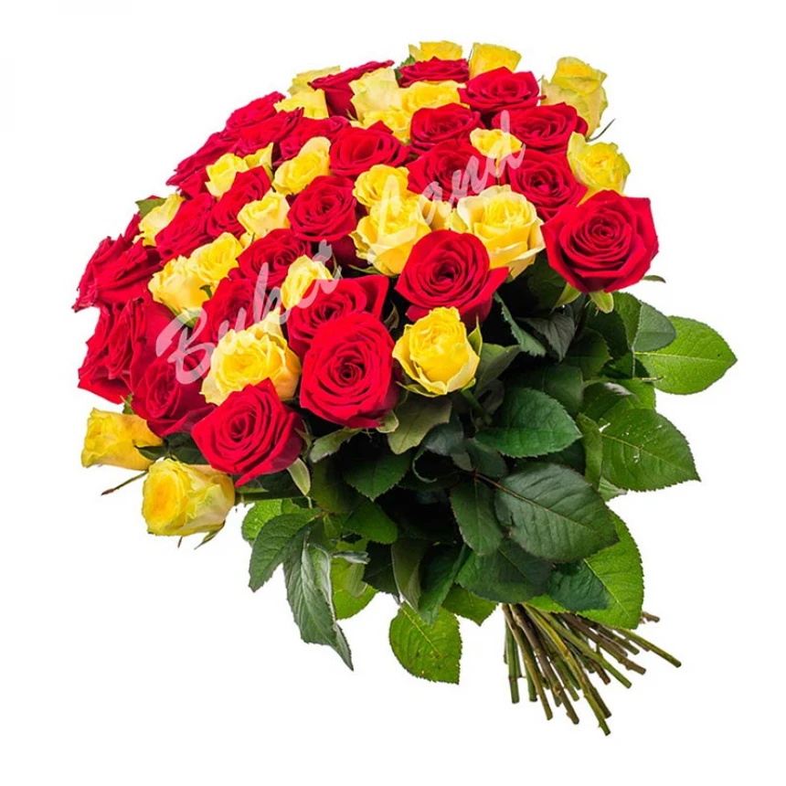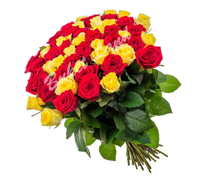 Цветы,Роза местная 51 роза микс «красно-желтая» 60 см 4672