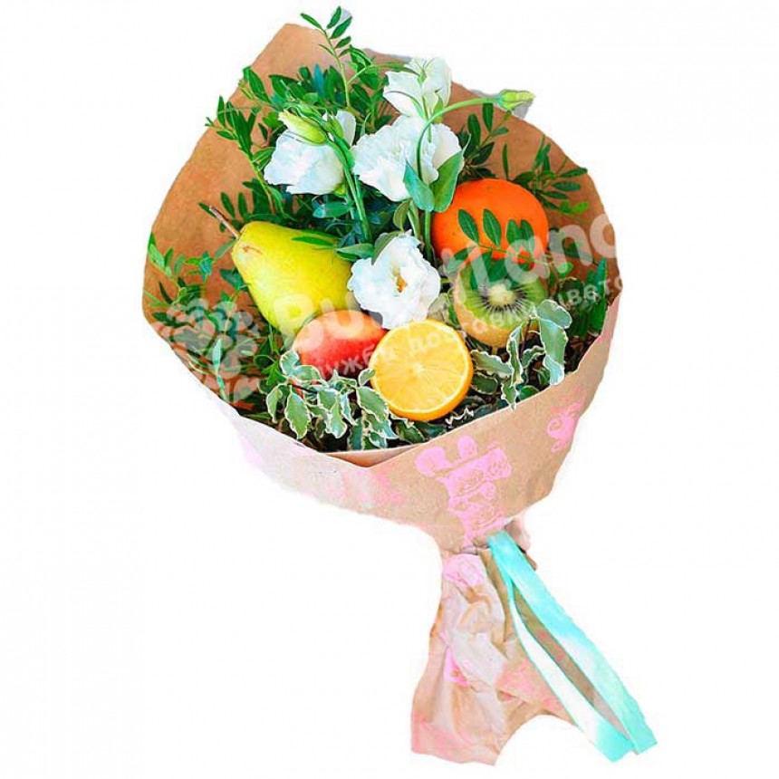 Букеты,Варианты букетов,Фруктовые букеты Букет из фруктов и цветов «Презент» | размер S 5029