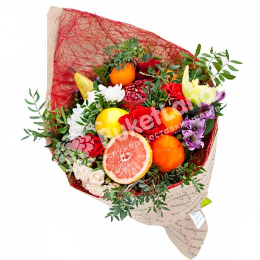 Букет из фруктов и цветов «Весенний поцелуй» | размер M