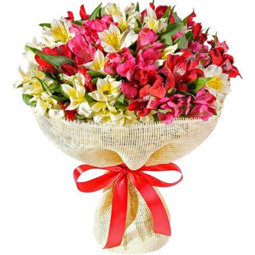 Описание букета:Букет для Вашего партнера, коллеги или подруги на юбилей или день рождения - всегда когда есть повод подарить улыбку и самые добрые пожелания!Состав: 25 разноцветных альстромерий.