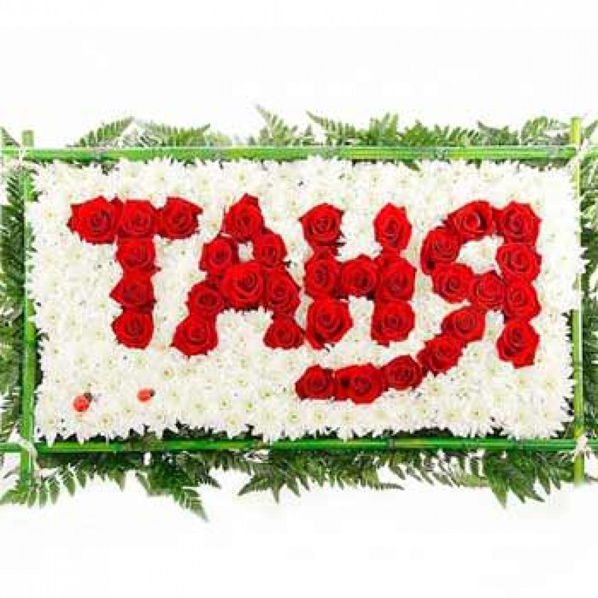 Описание композиции: Композиция с именем любимой из цветов - оригинальный способ признания в любви, удивит и покорит её сердце! Состав: 35 красных роз, белая кустовая хризантема, зелень, флористическая основа. (В зависимости от длины текста стоимость композиции может быть изменена. Для уточнения деталей свяжитесь, пожалуйста, с менеджером. )
