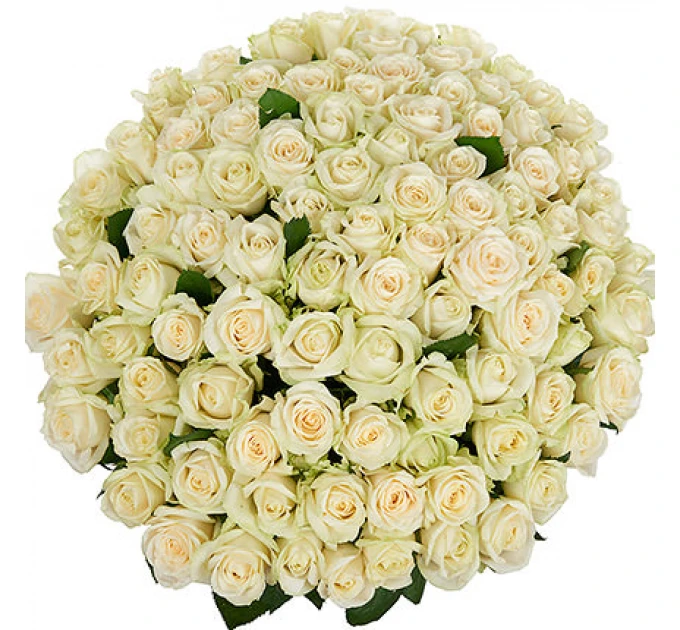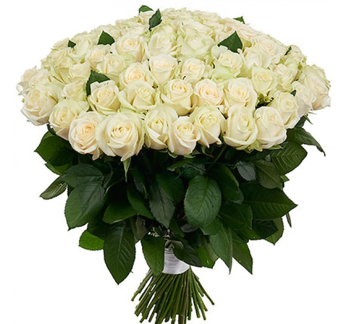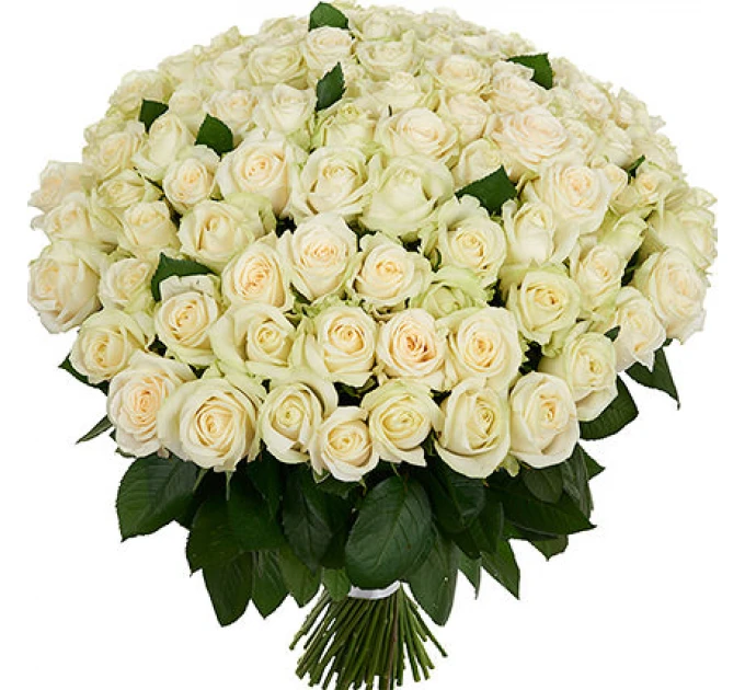 Опис букета: Білі троянди - символ чистоти та щирості. Такий букет буде чудовим подарунком для тонких та чуттєвих натур! Склад: 101 біла троянда, оформлення.
