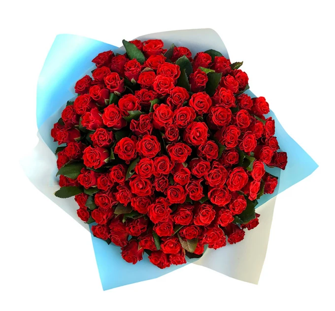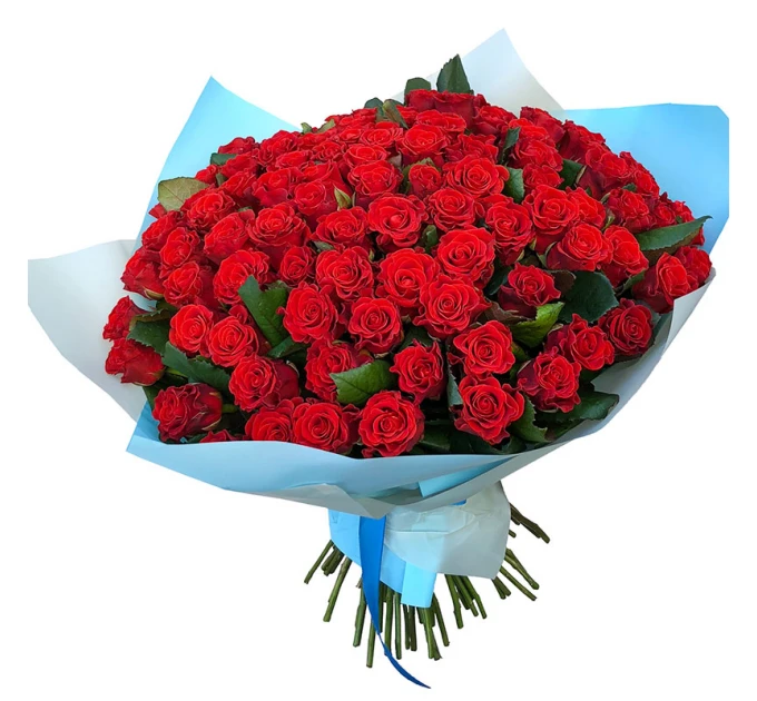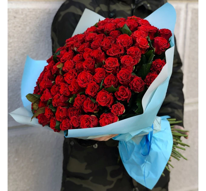 Букет із 101 червоної троянди, довжиною 50 см — один із найкращих подарунків, який можна зробити як знак уваги; символ глибокої любові та пристрасті. Такий монобукет обов'язково запам'ятається одержувачу своїм шармом та елегантністю, а красиве, стильне та сучасне оформлення від досвідчених флористів дасть потрібний настрій композиції. Через невелику висоту стебла, такий букет виглядає дуже ефектно і здається дуже красивим через об'єм 101 троянди. Доставка квітів та букетів з 101 червоної троянди проводиться щодня 24/7 - вітайте коханих у будь-який час!