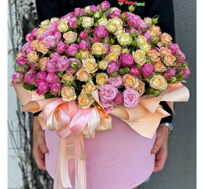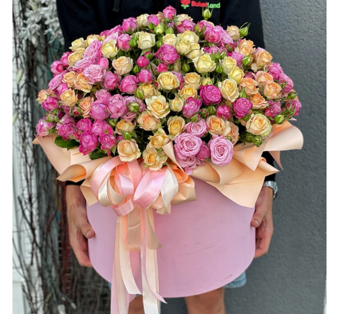 101 кущова троянда мікс в капелюшної коробки - це гарний твір від флористів служби доставки квітів azalya. Вибираючи букет 101 кущова Троянда мікс в капелюшній коробці, ви зможете здивувати подружку нетиповою композицією. Оперативна доставка букета 101 кущова Роза мікс в капелюшній коробці по Києву, великим містам як Одеса, Дніпро, Суми та іншим містам України проводиться максимально швидко. Наша компанія здійснить все, що потрібно, щоб ви отримали задоволення від результату, а весь хід справи ми беремо на себе!