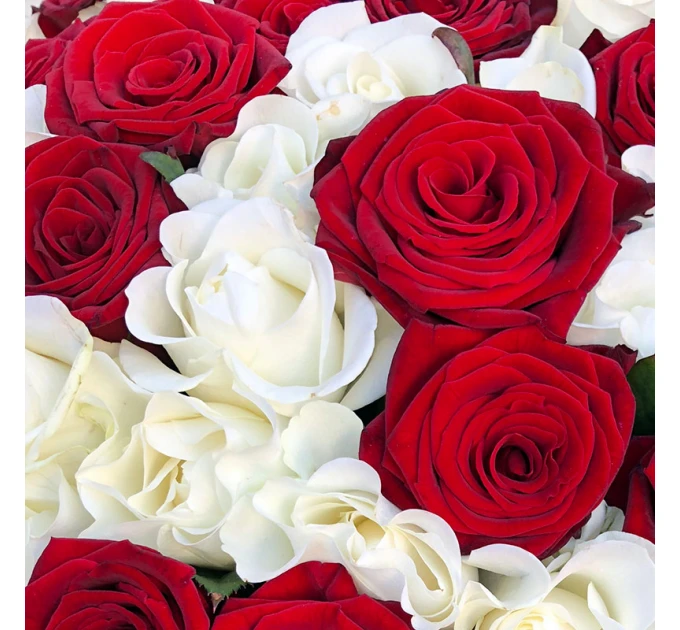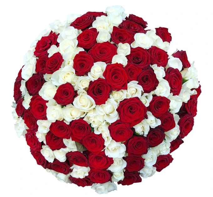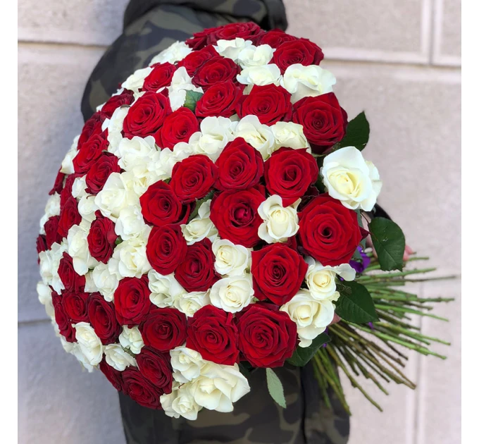 Придбати 101 троянда мікс «червоно-біла» 60 см у Києві на Оболоні з доставкою✅ ви можете в нашому магазині. Якщо виникли питання щодо товару, ви можете написати в наш чат менеджеру і ми з радістю вам допоможемо!