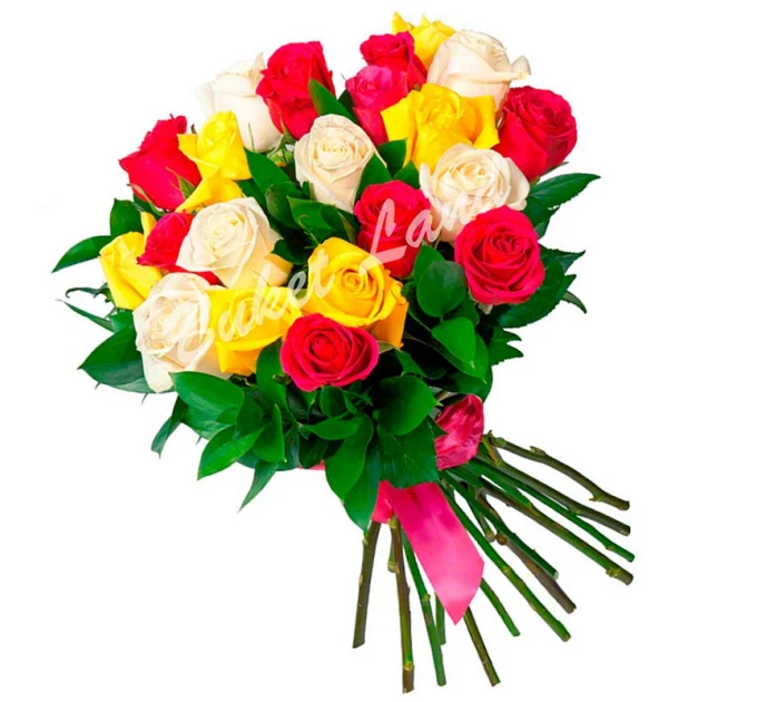 Придбати 19 троянд мікс «червоно-жовто-біла» 60 см у Києві на Оболоні з доставкою✅ ви можете в нашому магазині. Якщо виникли питання щодо товару, ви можете написати в наш чат менеджеру і ми з радістю вам допоможемо!