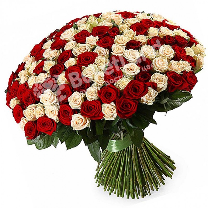 Букети,Варіанти букетів,Букети з 101 троянди 201 троянда мікс червоно-біла 60 см 5054