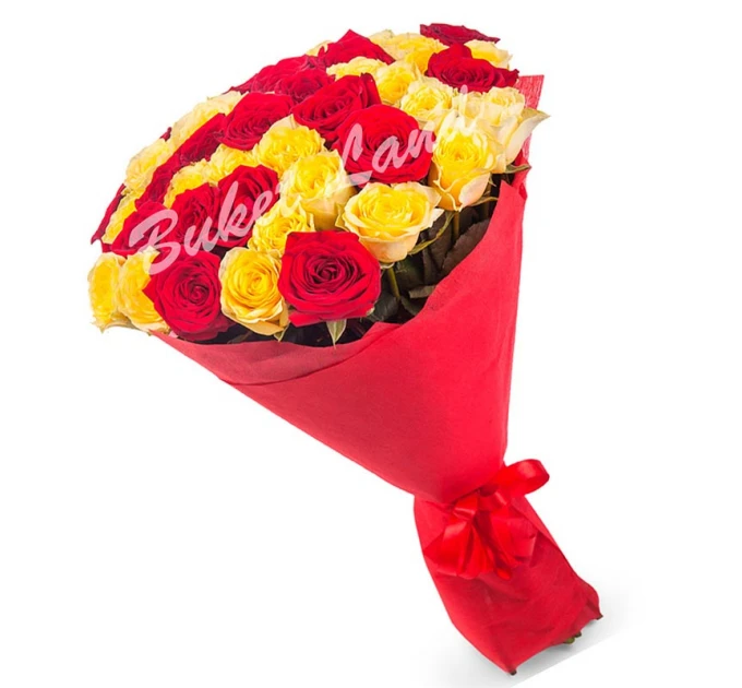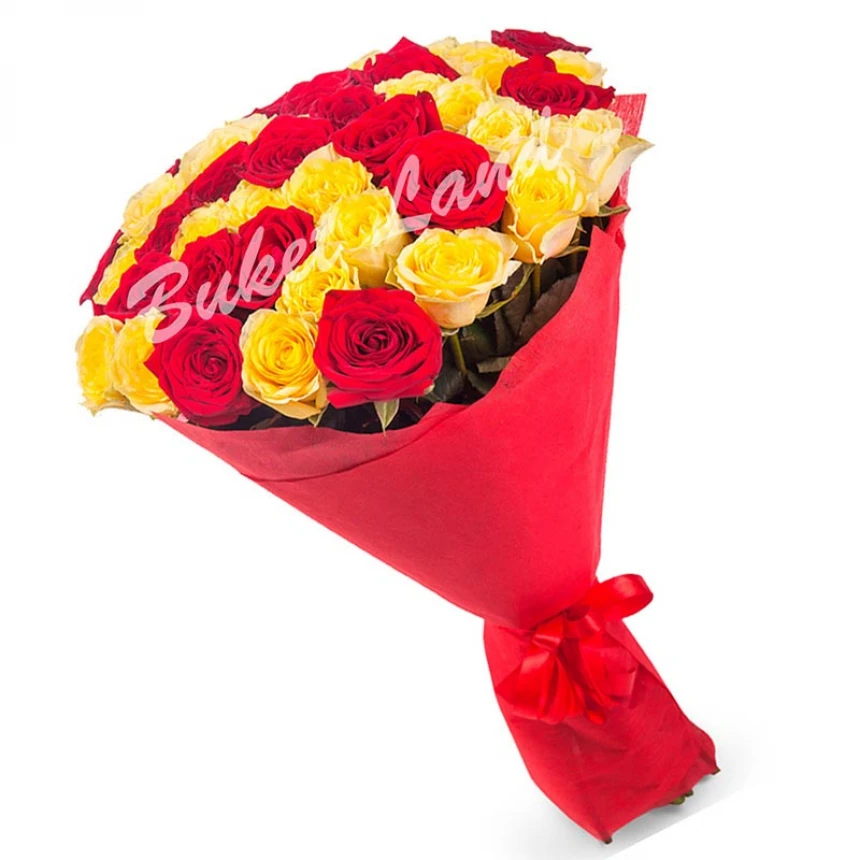 Придбати 41 троянда мікс «червоно-жовта» 60 см у Києві на Оболоні з доставкою✅ ви можете в нашому магазині. Якщо виникли питання щодо товару, ви можете написати в наш чат менеджеру і ми з радістю вам допоможемо!