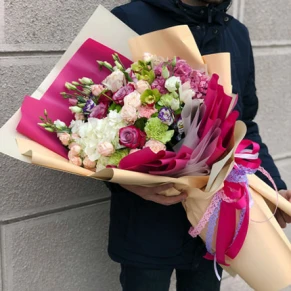Гігантський бежевий ведмедик і 11 червоних троянд