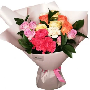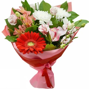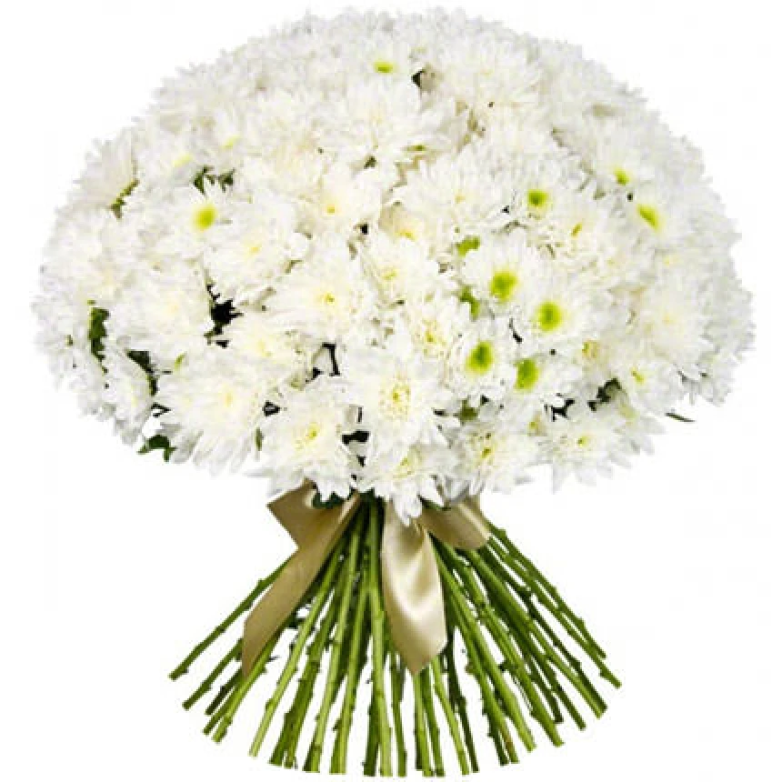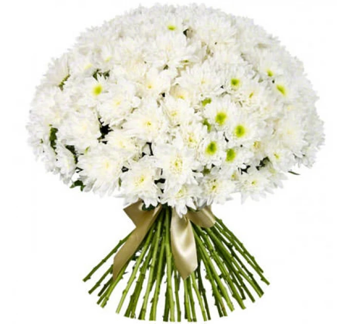 Опис букета: Чарівний букет ніжних квітів без зайвих слів передасть щирість Ваших намірів і безперечно захопить кохану! Склад: 51 гілка білої ромашкової хризантеми, оформлення.
