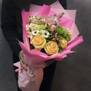 Букет тюльпанів в асортименті «З любов'ю» 15 шт.