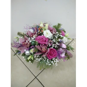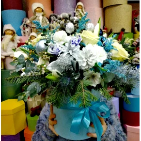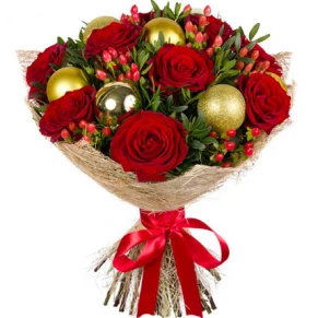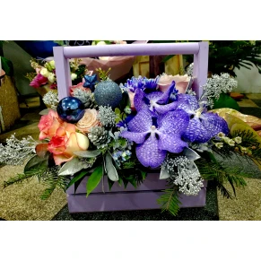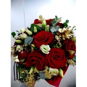 Опис композиції: Чудова новорічна композиція - чудове привітання з новим роком! Якщо ви хочете щось сказати людині без слів, тоді квіти – найуніверсальніший спосіб це зробити. Друг, кохана людина, родич, діловий партнер, знаменитість або навіть людина, яку ви майже не знаєте, — всі заслуговують на увагу, виражену у вигляді букета квітів.