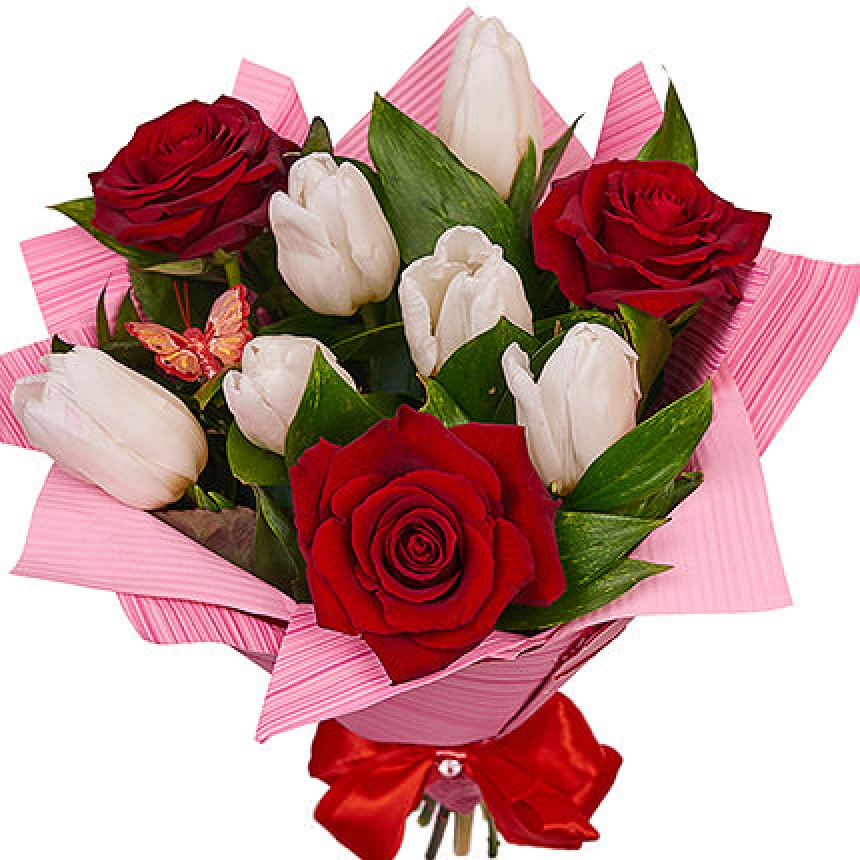 Несподіваний мікс червоної троянди та білого тюльпана передасть Вашому одержувачу найяскравіші емоції та безсумнівно порадує своєю свіжістю та ароматом!