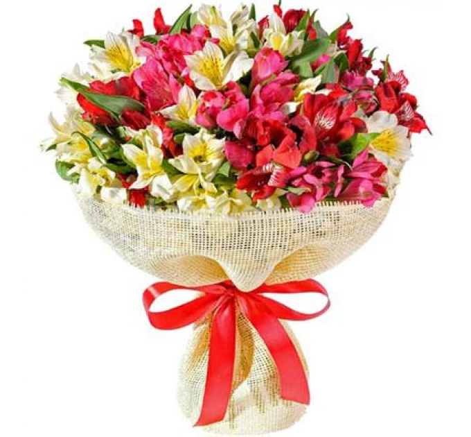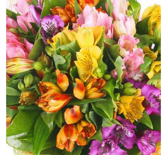 Опис букета:Букет для Вашого партнера, колеги чи подруги на ювілей або день народження - завжди коли є привід подарувати посмішку та найдобріші побажання!Склад: 25 різнокольорових альстромерій.