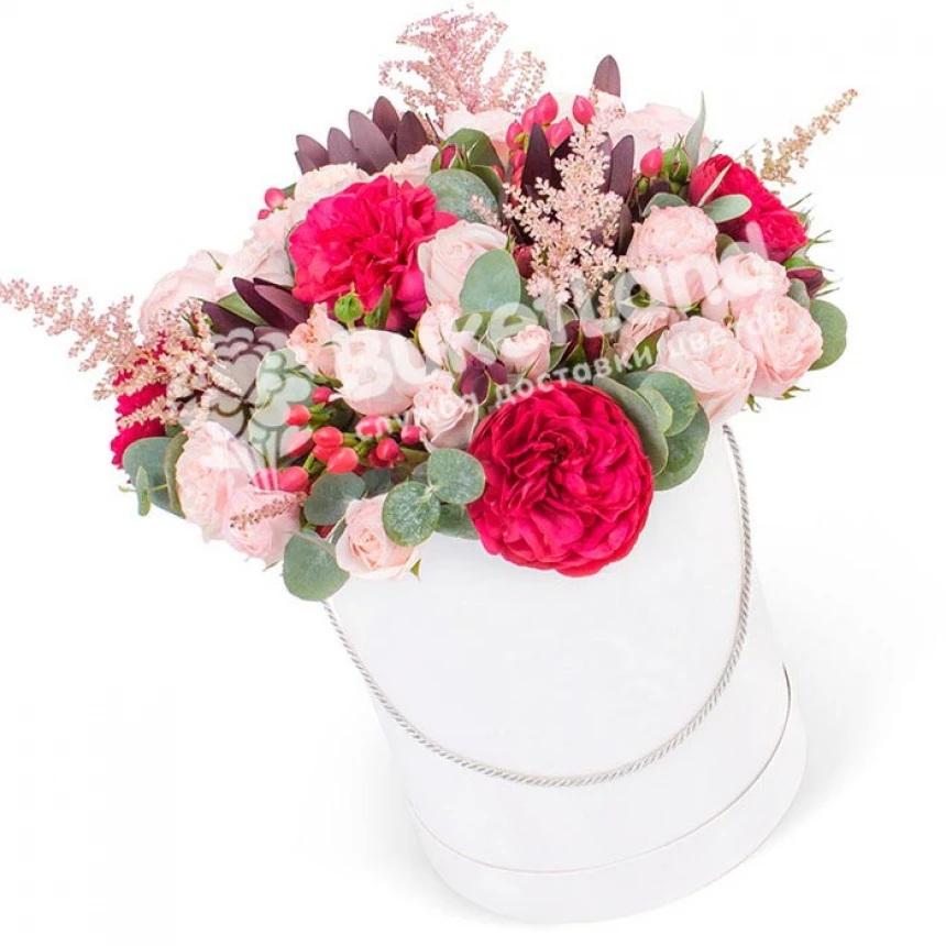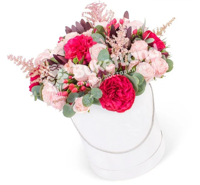 Букети,Варіанти букетів,Ексклюзивні букети з екзотики Капелюшна коробка з екзотикою | розмір M 5015