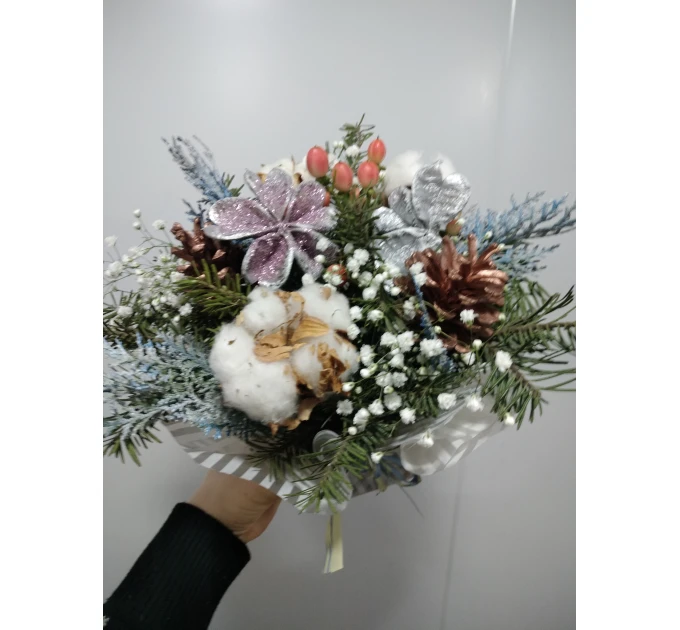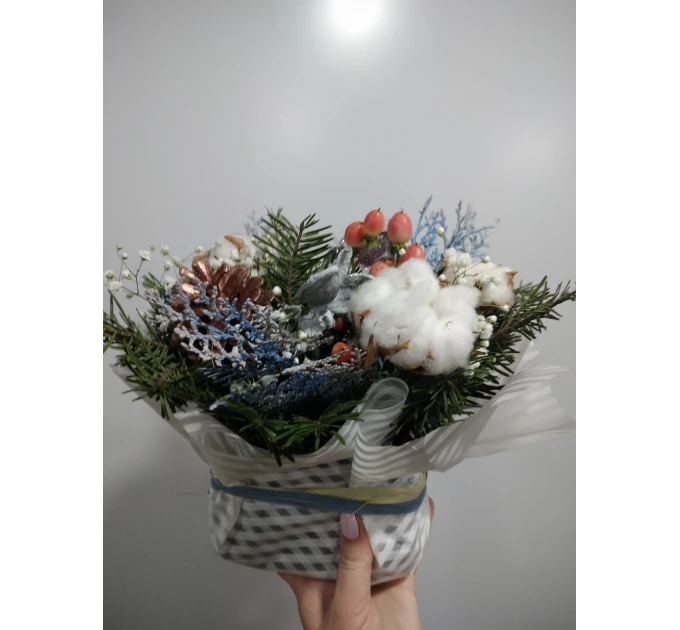 Опис композиції: Шикарний новорічний подарунок для поздоровлення близької людини. Подаруйте незабутні емоції цього нового року! Якщо ви хочете щось сказати людині без слів, тоді квіти – найуніверсальніший спосіб це зробити. Друг, кохана людина, родич, діловий партнер, знаменитість або навіть людина, яку ви майже не знаєте, — всі заслуговують на увагу, виражену у вигляді букета квітів.