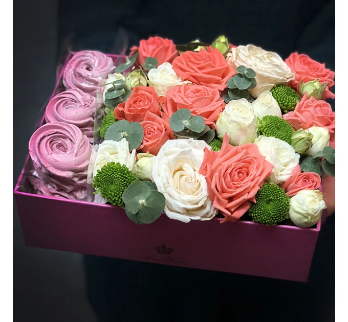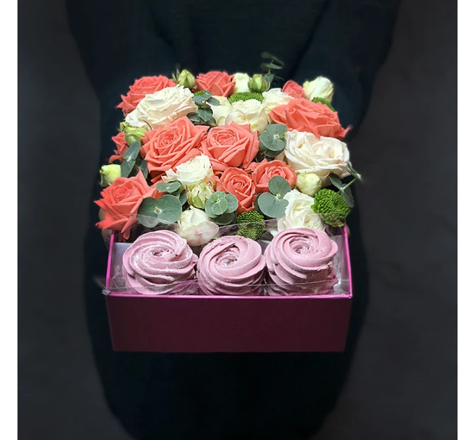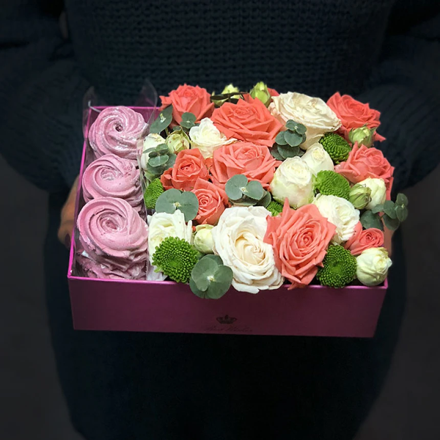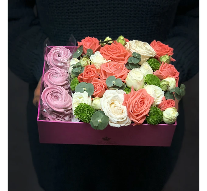 Коробочка з квітами та зефіром «Ласун» - це унікальний витвір мистецтва від досвідчених флористів служби доставки квітів azalya. Вибираючи коробочку з квітами та зефіром «Ласун» ви зможете здивувати дружину не банальною композицією. Швидка доставка вашої коробочки з квітами та зефіром «Ласунка» по Києву, великим містам як Запоріжжя, Вінниця, Суми та іншим містам України здійснюється максимально швидко. Наша служба доставки квітів по Києву та Україні зробить все необхідне, щоб ви отримали найкращий результат, а весь хід справи ми беремо на себе!