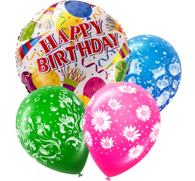 Опис: Прекрасне доповнення добукету ароматних квітів та Вашого привітання з Днем Народження!Відмінний доповненнядоcongratulations на його п'ятницюі bouquet offragrant flowers! Ми додаємо в кулю спеціальний розчин, який збільшує час польоту куль у 4-5 разів (від 2-х днів до 2-х тижнів) – яскраві кулі довго радуватимуть Вашого одержувача! Склад: 3 латексні різнокольорові гелієві кульки з квітковими принтами, 1 фольгована гелієва кулька з Днем Народження. (Кульки в асортименті. Кулі можуть бути замінені на однотипні, у разі відсутності даної моделі на складі. Колір та форма кульки може бути змінено за Вашим бажанням. Для уточнення заміни зв'яжіться, будь ласка, з нашим менеджером.) Колір: кольоровий.