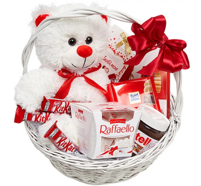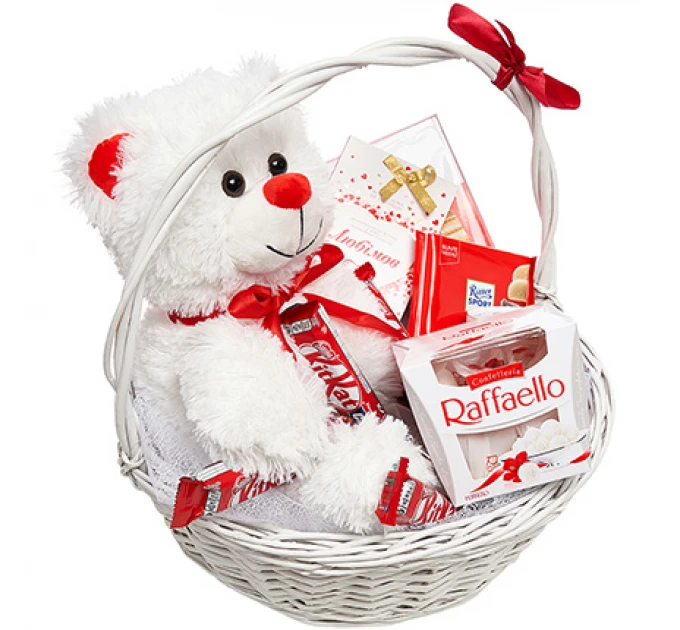 кошик, флористичний матеріал. (Кошик доставляється в прозорій целофановій упаковці.)