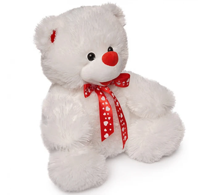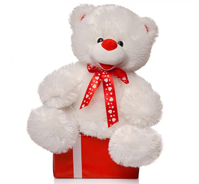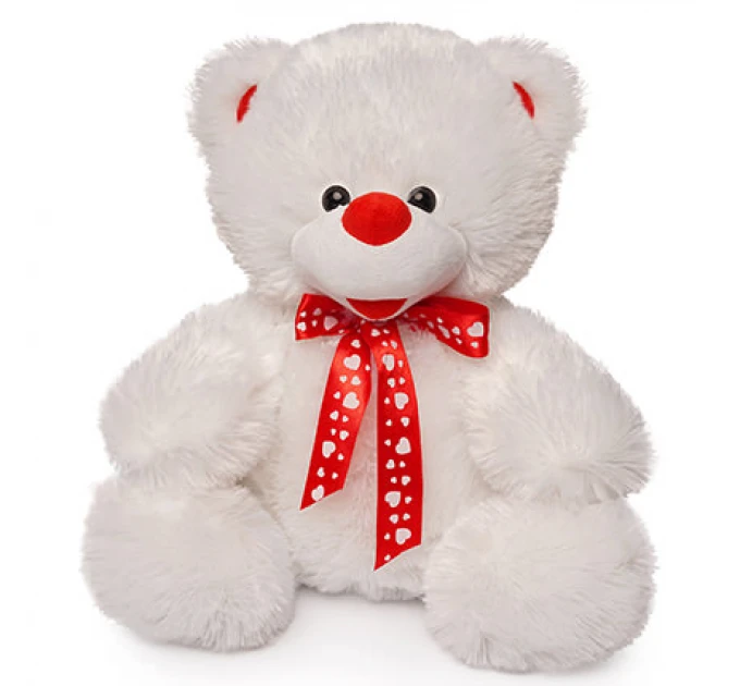 Опис іграшки: Білий ведмедик чудово підійде для привітання до дня народження! Стане чудовим доповненням до букету квітів, кошику квітів або коробці з квітів! А якщо до такого ансамблю додати кошик фруктів та зв'язку кульок – привітання стане просто незабутнім!