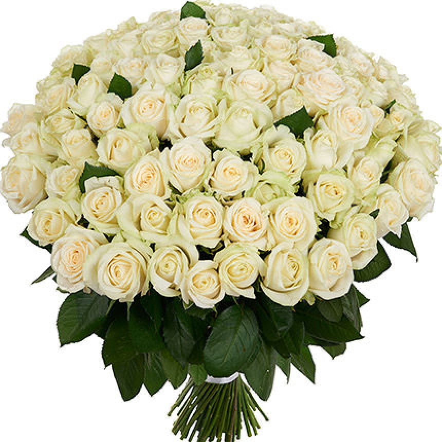 Описание букета:Белые розы - символ чистоты и искренности. Такой букет будет замечательным подарком для тонких и чувственных натур! Состав: 101 белая роза, оформление.