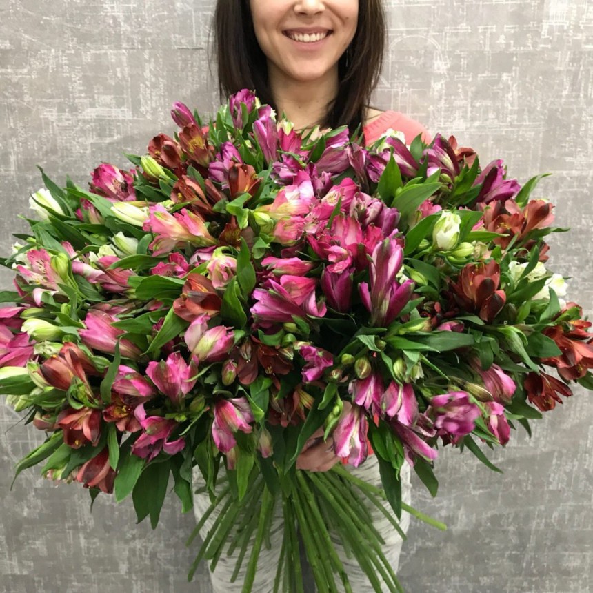 Купить 49 альстромерий микс в Киеве ❤ на Оболони с доставкой✅ вы можете в нашем магазине. Если возникли вопросы по товару вы можете написать в наш чат менеджеру и мы с радостью вам поможем!