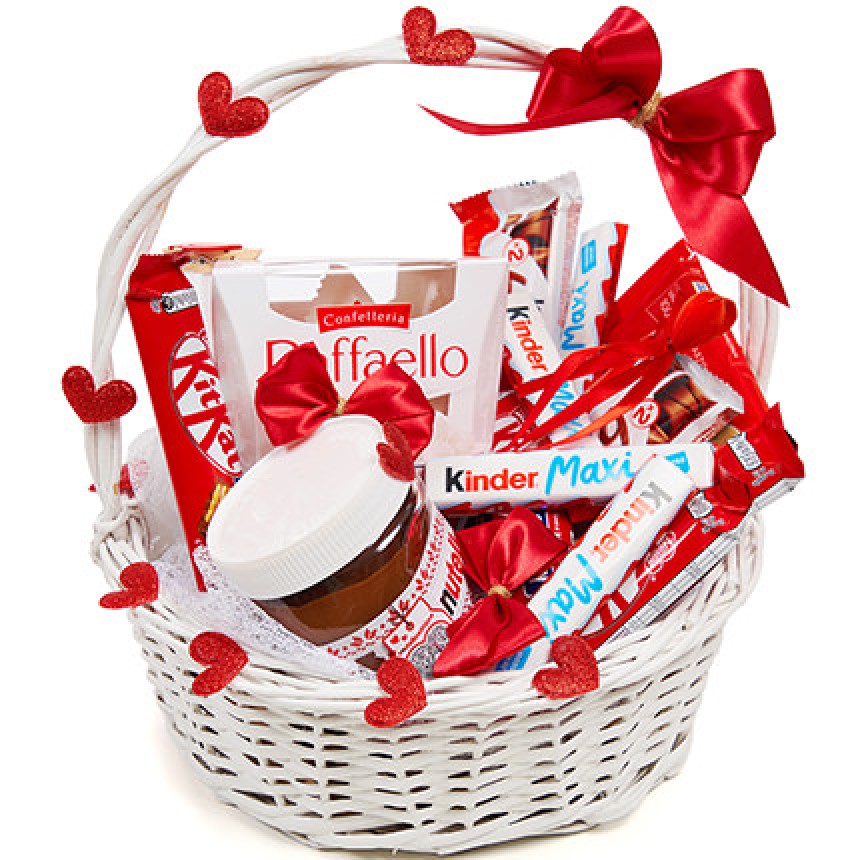 Безпроигрышный подарок к романтичному празднику! Неповторимая корзинка сладостей останется в памяти Вашего получателя на долгое время!
