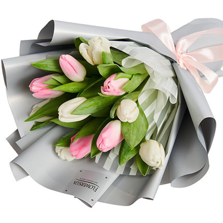Цветы в коробке "25 белых и розовых тюльпанов"
