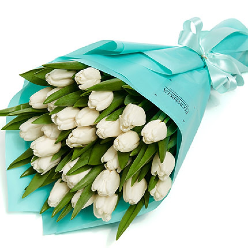 Нежная охапка белых весенних тюльпанов не оставит равнодушной ни одну представительницу прекрасного пола!