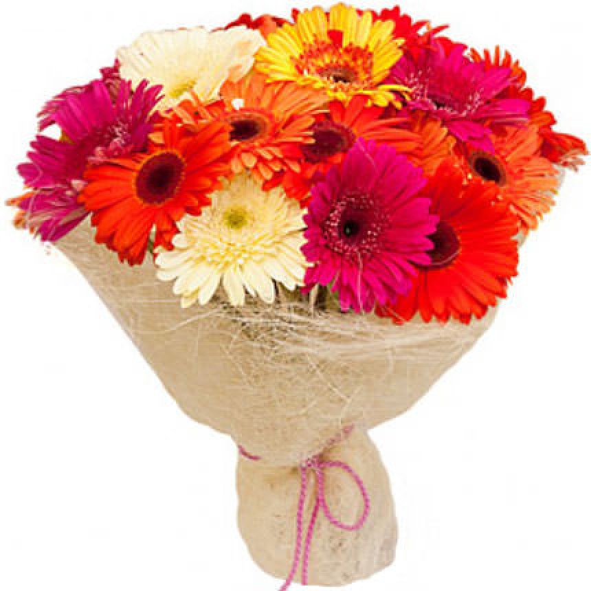 Описание букета: Так приятно видеть буйство ярких красок после долгой снежной зимы! С таким букетом поднять настроение очень легко! Состав: 25 разноцветных гербер. (Чтобы уточнить наличие гербер свяжитесь, пожалуйста, с нашим менеджером.) оформление может отличаться
