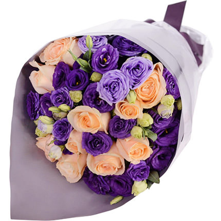 Описание букета: Удивительное сочетание нежной кремовой розы и насыщенной фиолетовой эустомы делает этот букет особенным! А что может быть лучшим подарком, чем особенный букет для особенной девушки!? Состав: 9 кремовых роз, 10 веток фиолетовой эустомы, оформление.