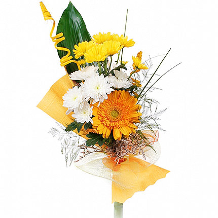 2 ветки ромашковой хризантемы, гербера, статица, зелень, оформление может отличаться. (Мини букет)