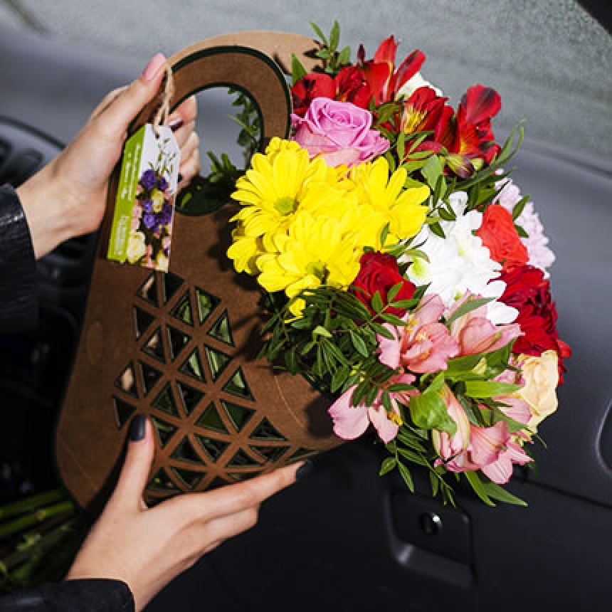 Яркий букет в оригинальном оформлении замечательно подойдет для поздравления с праздником или днем рождения!