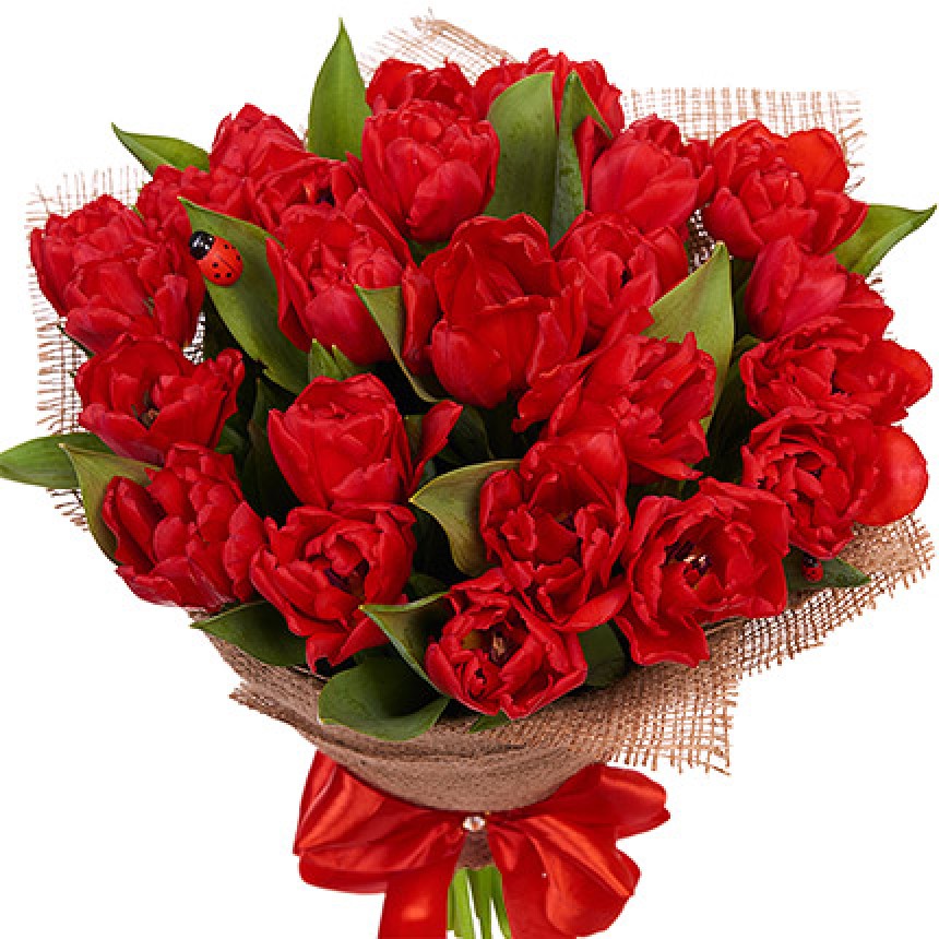 25 красных тюльпанов.