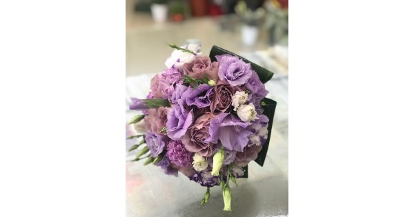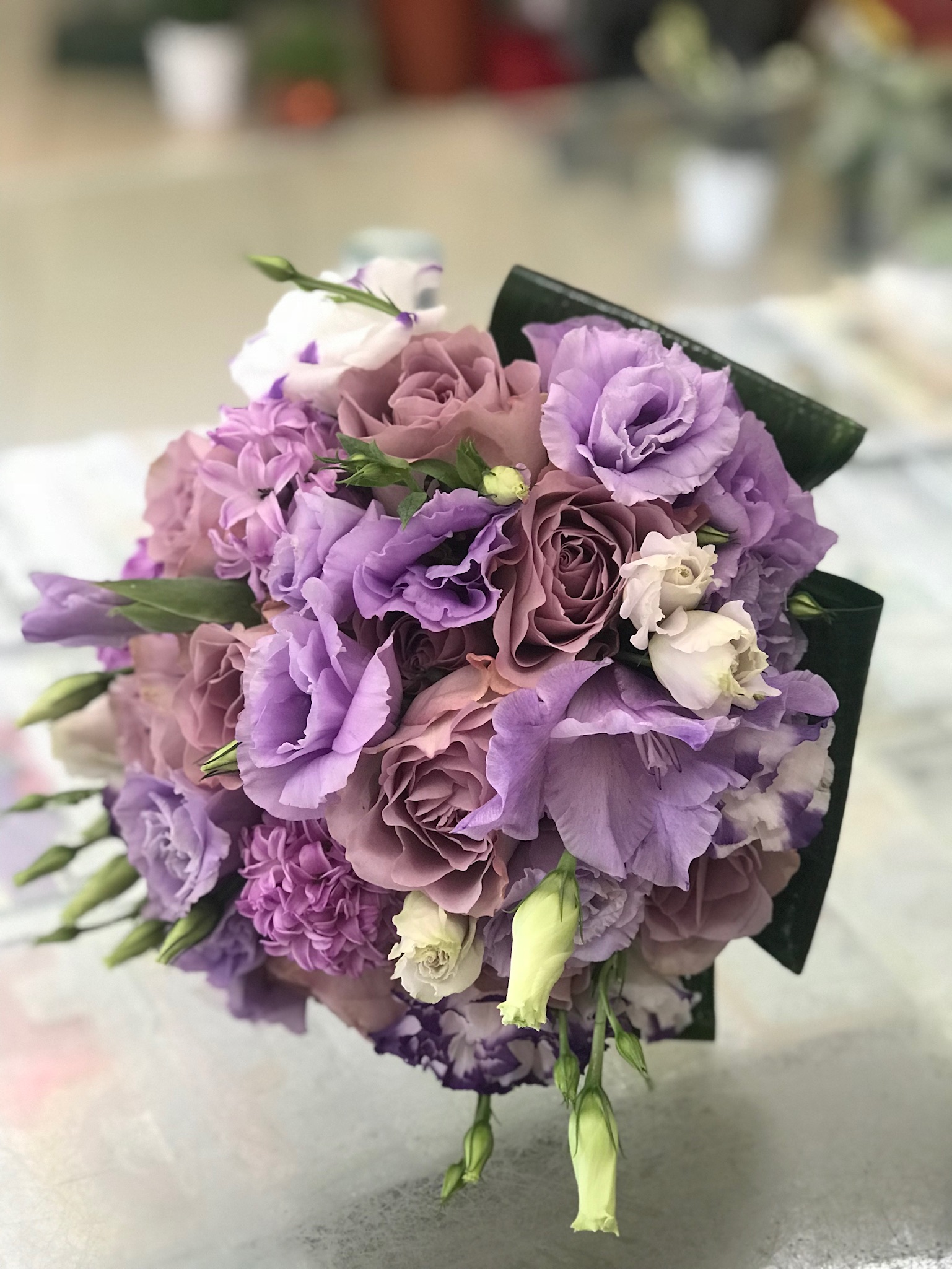 Н. Весільний букет 7, букети, Еустома, фрезія, троянда меморі, троянда бомбастик..