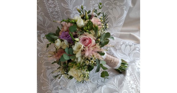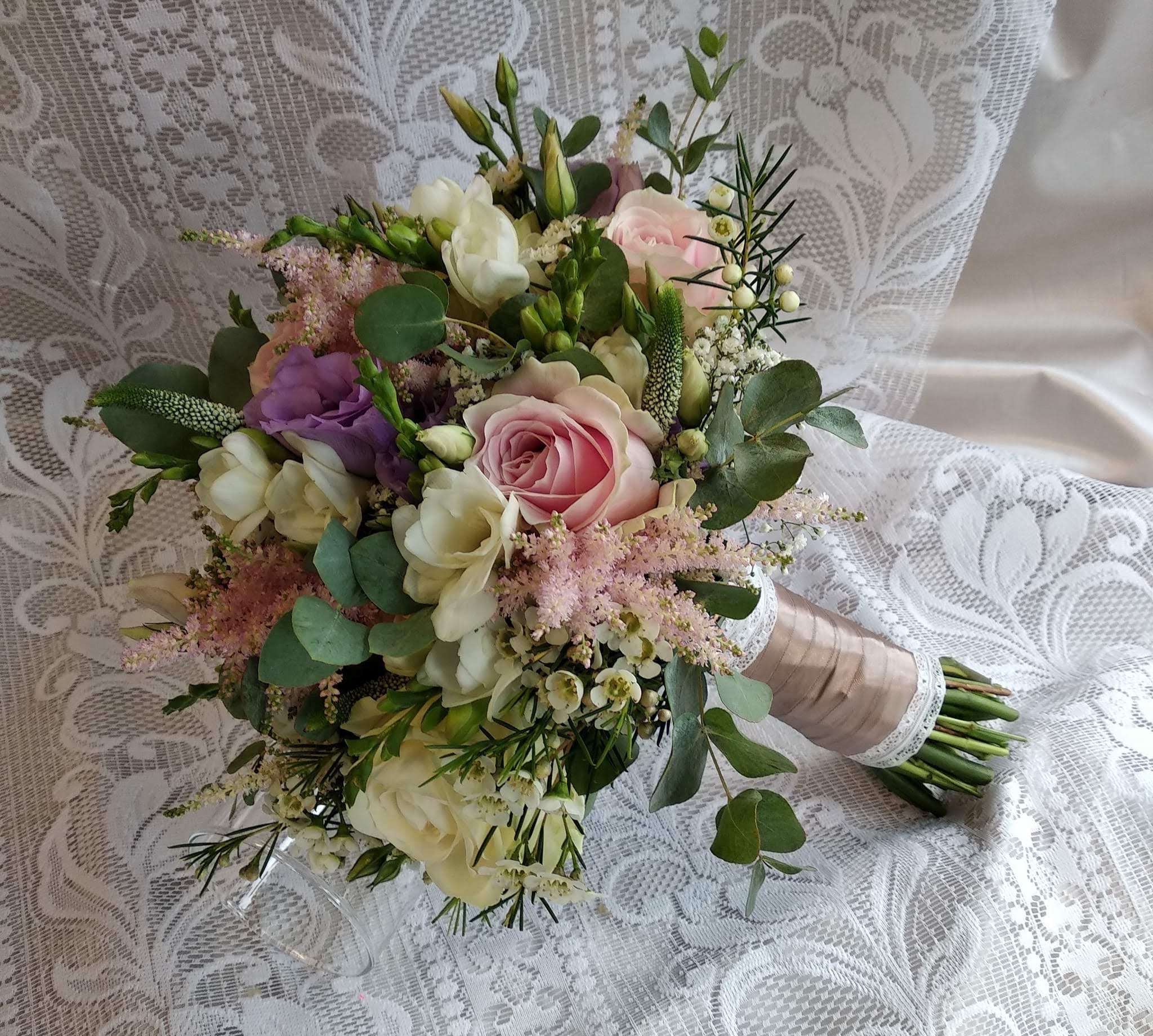 Н. Весільний букет 9, букети, Троянда еквадор, астильба, хамілацум, евкаліпт, еустома..