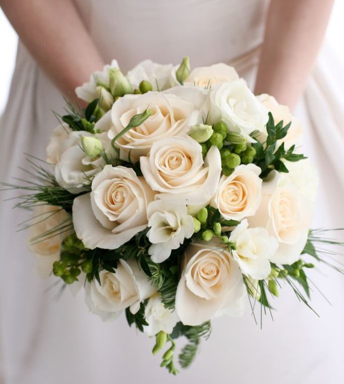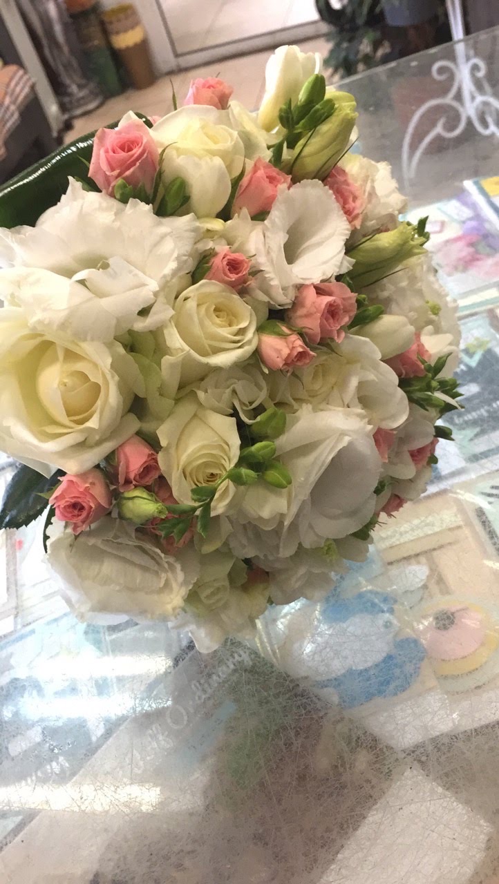 Весільний Букет номер 17 - Model 101 - Весільні букети - Букет 17: Троянда, Фрезія, Еустома, Зелень ..