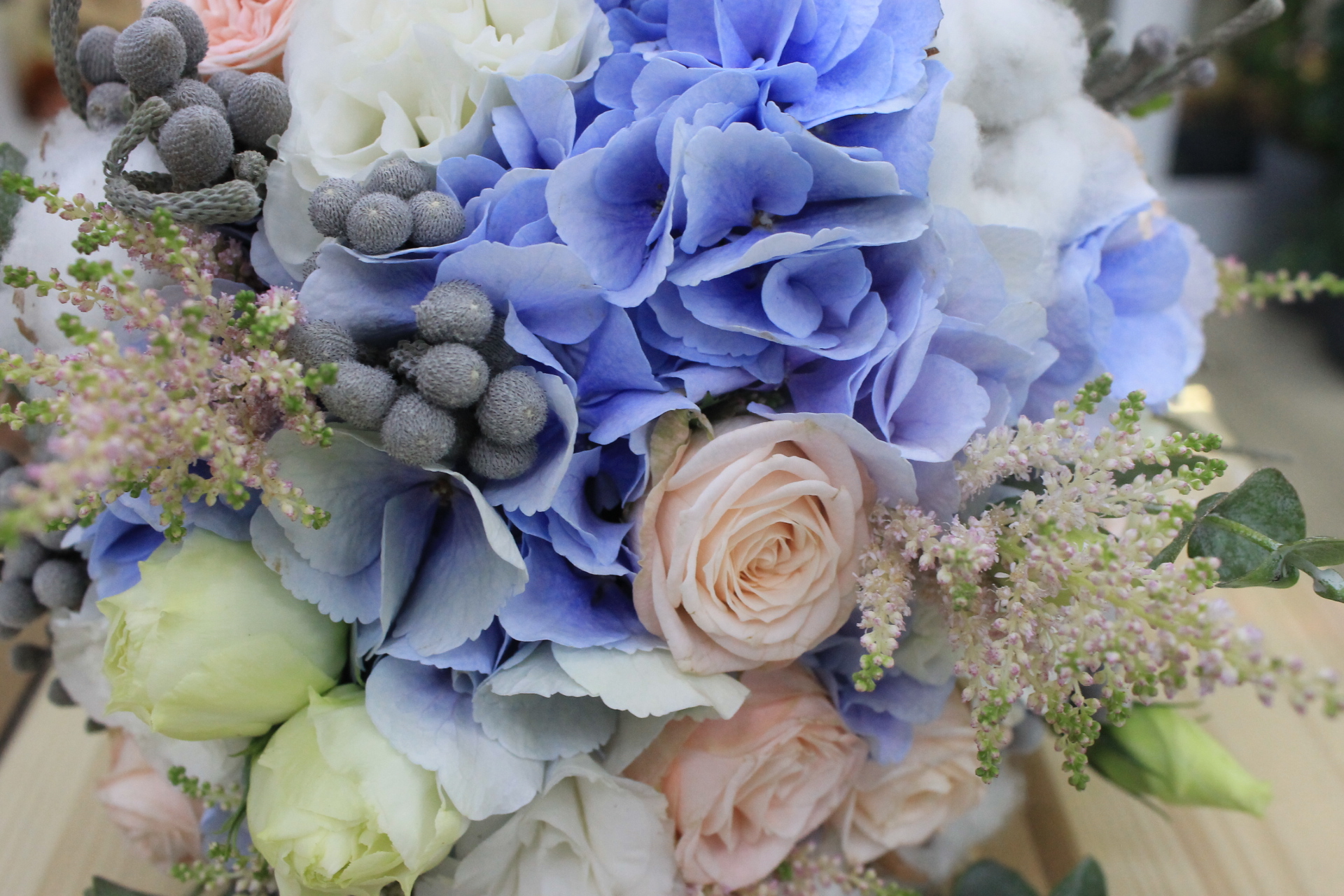 Н. Весільний букет 2, букети, гортензія, троянда аваланч, еустома, орхідея фаленопсис, солідаго..