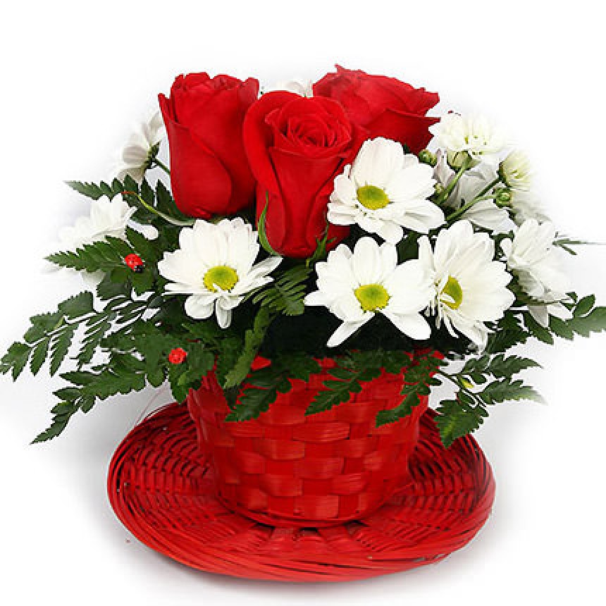 Описание букета: Идеальное начало дня! С таким подарком утром - день будет счастливым, удачным и плодотворным, а оказанное Вами внимание будет выше всяких похвал! Состав: 3 красные розы, 2 ветки белой ромашковой хризантемы, декоративная чашка,флористический материал. (Чашка в ассортименте. Чашка может быть заменена на однотипную, в случае отсутствия данной модели на складе. Цвет чашки и букета, а так же состав букета могут быть изменены по Вашему желанию. Для уточнения замены свяжитесь, пожалуйста, с менеджером.)
