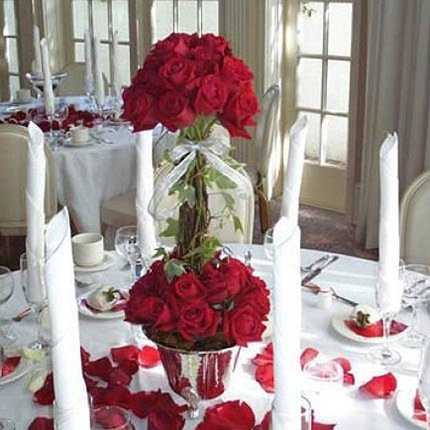 Приятная композиция из алых роз будоражит чувства и вызывает аппетит! Замечательный акцент в оформление Вашего праздника!