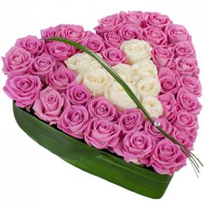 Романтическая композиция из розовых и белых роз в форме сердца завоюет сердце Вашей избранницы!