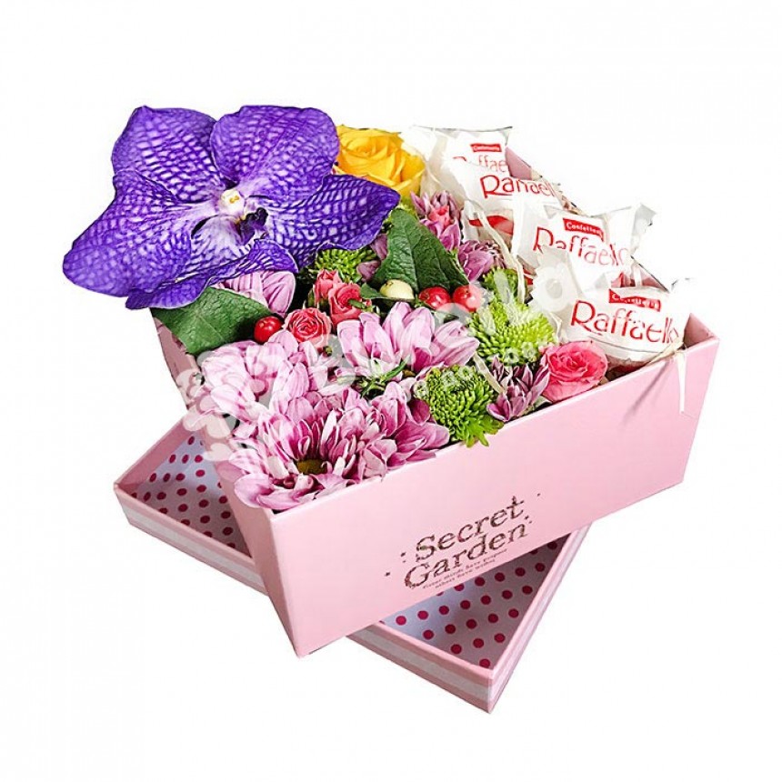 Купить Коробка с цветами и конфетами 2 | размер M в Киеве ❤ на Оболони с доставкой✅ вы можете в нашем магазине. Если возникли вопросы по товару вы можете написать в наш чат менеджеру и мы с радостью вам поможем!