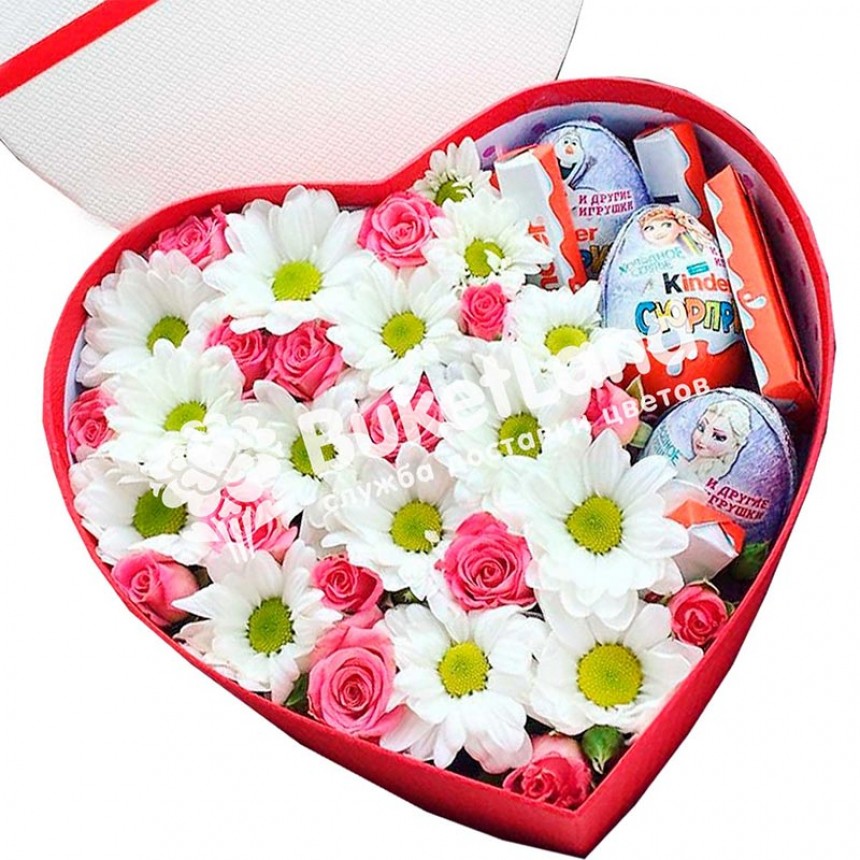 Купить Коробка с цветами и сладостями в виде сердца | размер М в Киеве ❤ на Оболони с доставкой✅ вы можете в нашем магазине. Если возникли вопросы по товару вы можете написать в наш чат менеджеру и мы с радостью вам поможем!