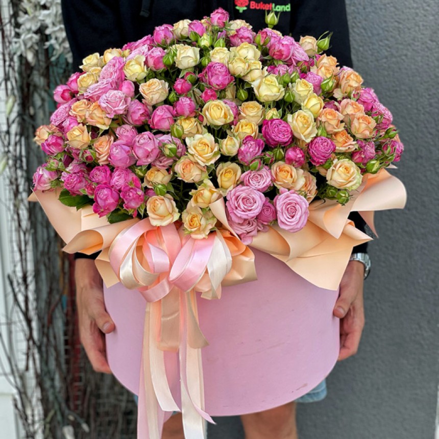 101 кустовая Роза микс в шляпной коробке - это красивое произведение от флористов службы доставки цветов azalya. Выбирая букет 101 кустовая Роза микс в шляпной коробке вы сможете удивить подружку нетипичной композицией. Оперативная доставка букета 101 кустовая Роза микс в шляпной коробке по Киеву, крупным городам как Одесса, Днепр, Сумы а так же остальным городам Украины производится максимально быстро. Наша компания осуществит все что нужно чтобы вы получили удовольствие от результата, а весь ход дела мы берем на себя!