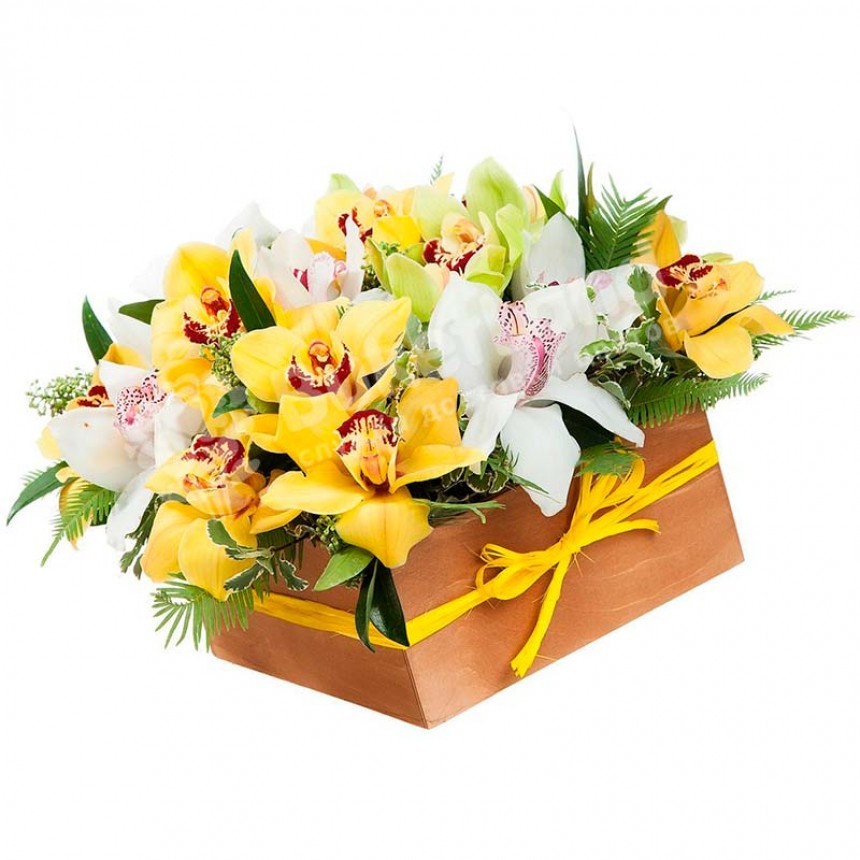 25 орхидей микс в коробке (орхидея, орхидеи)