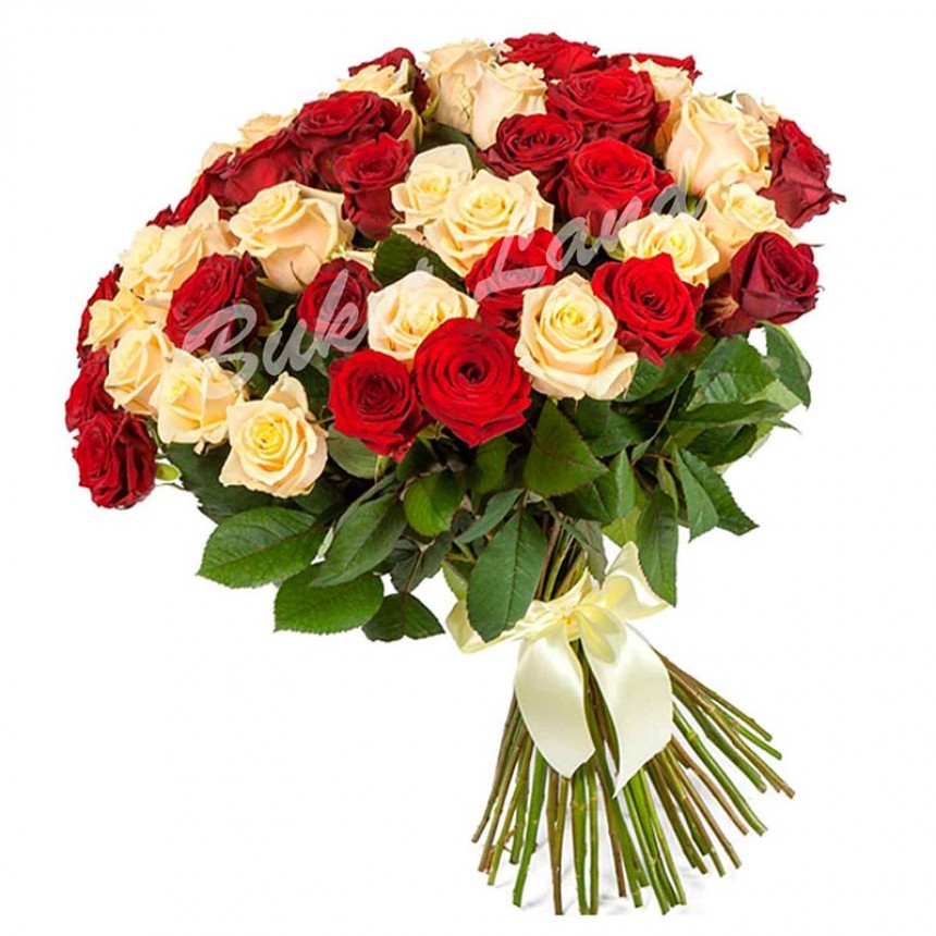 Цветы,Роза местная 51 роза микс «красно-бежевая» 60 см 4623