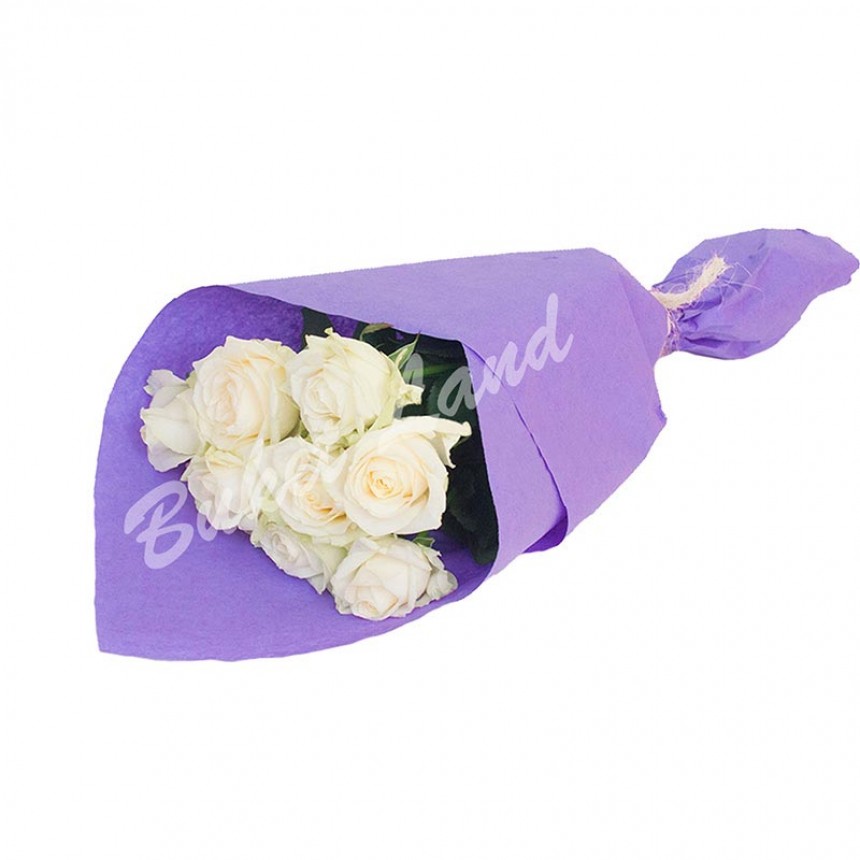 Цветы,Роза местная 9 белых роз Аваланч 60 см 4656