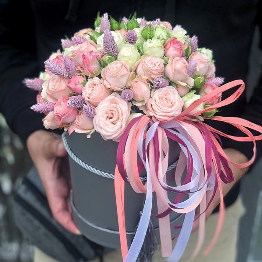 Цветы в шляпной коробке «Цветочный блюз»