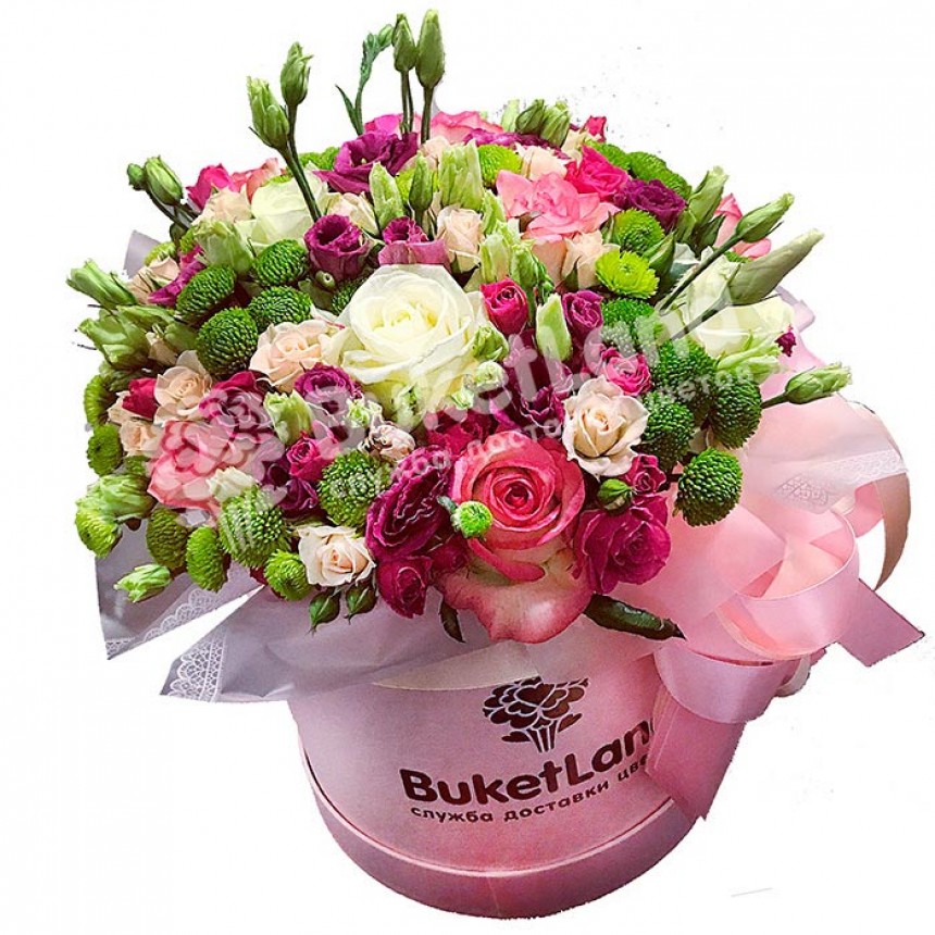 Букеты,Варианты композиций,Цветы в шляпной коробке Цветы в шляпной коробке «Мелодия счастья» 4645